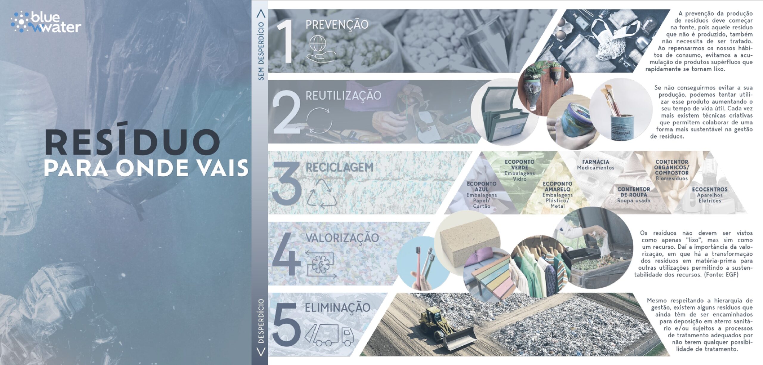 Se han desarrollado una serie de dípticos educativos dedicados a cinco temas clave relacionados con el agua y los residuos: “¿Residuo, a dónde vas?”, “Basura marina”, “Ciclo natural del agua”, “Ciclo urbano del agua (ETAs y EDARs)” e “Impactos en el ser humano y en la biodiversidad”. Estos materiales forman parte de las acciones de sensibilización ambiental del proyecto BlueWWater y están dirigidos tanto a centros educativos como al público general.